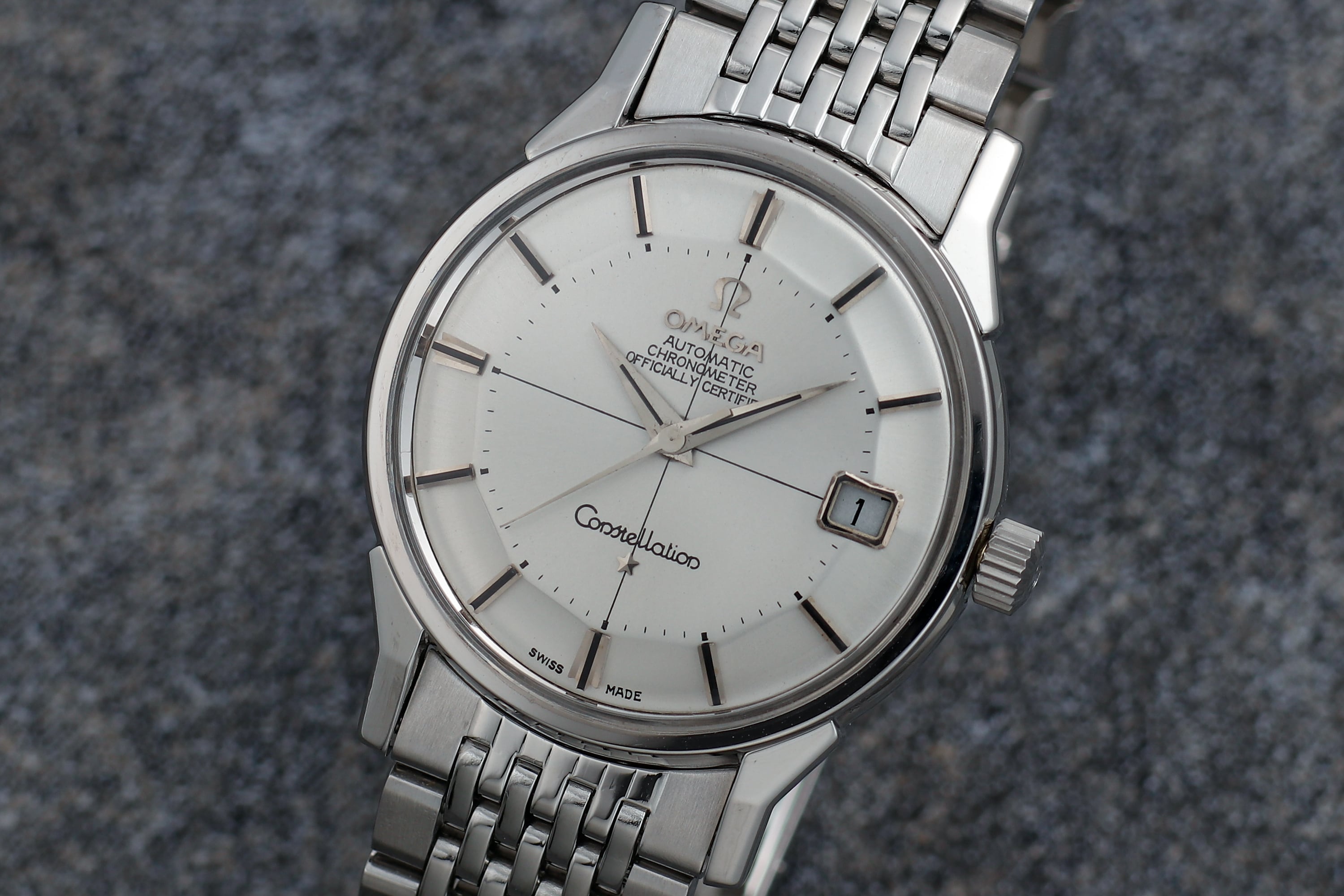 オメガ コンステレーション 14902SC-61 クロスライン 亀の甲文字盤 パイパンダイヤル ライスブレス 1953~1957年製 7471